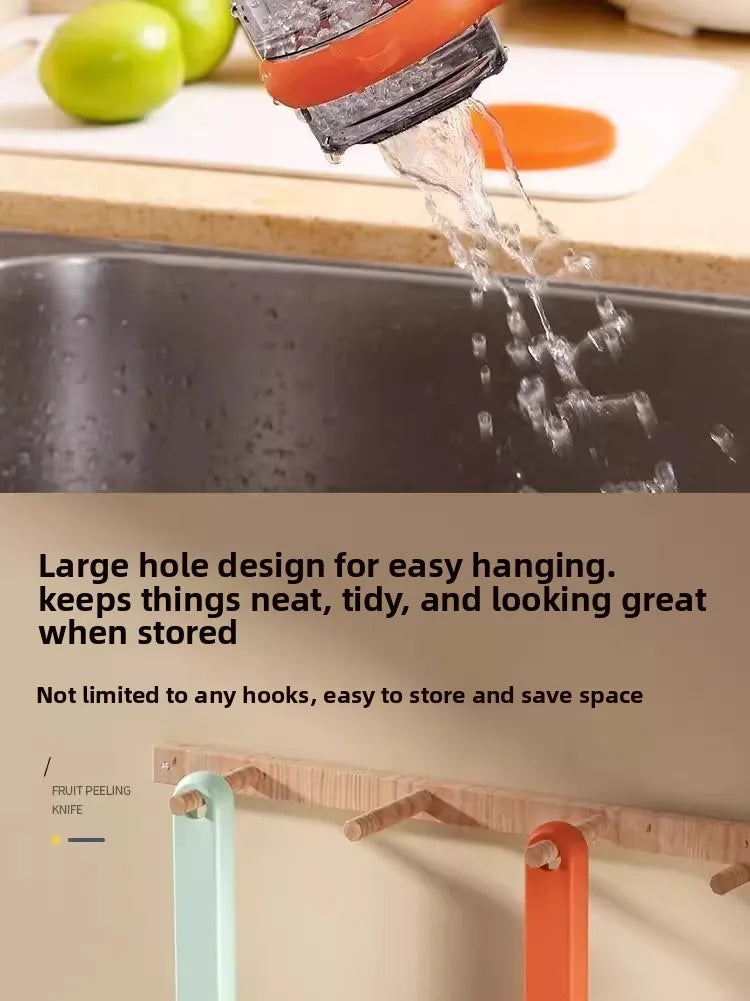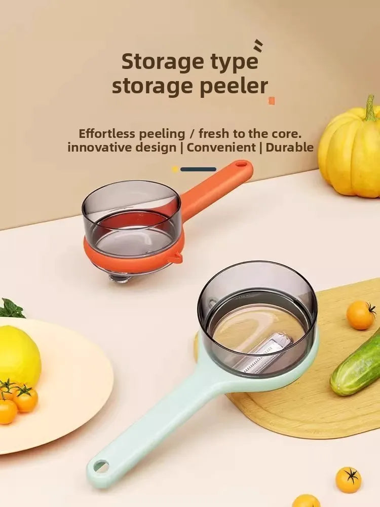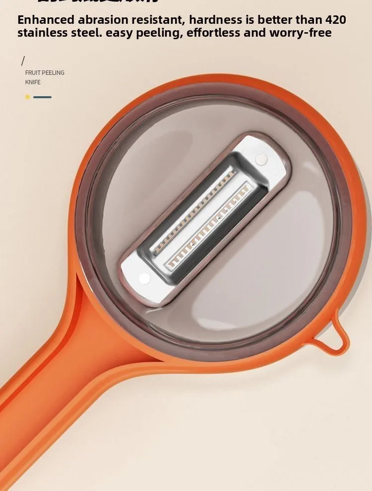 This multifunctional peeler with storage case makes peeling and slicing fruits and vegetables fast and easy. Sharp stainless steel blades handle both soft and hard skins with precision. The ergonomic handle ensures a comfortable grip and full control, while durable, rust-proof materials make it long-lasting and easy to clean—just rinse or pop it in the dishwasher.