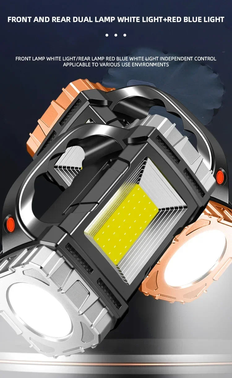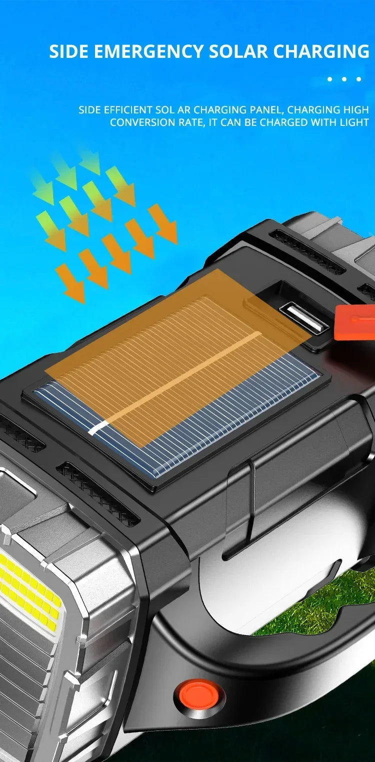 Powerful LED Flashlight USB+Solar Rechargeable Flashlight COB Outdoor Camping Torch Portable Searchlight Power Bank Outdoor